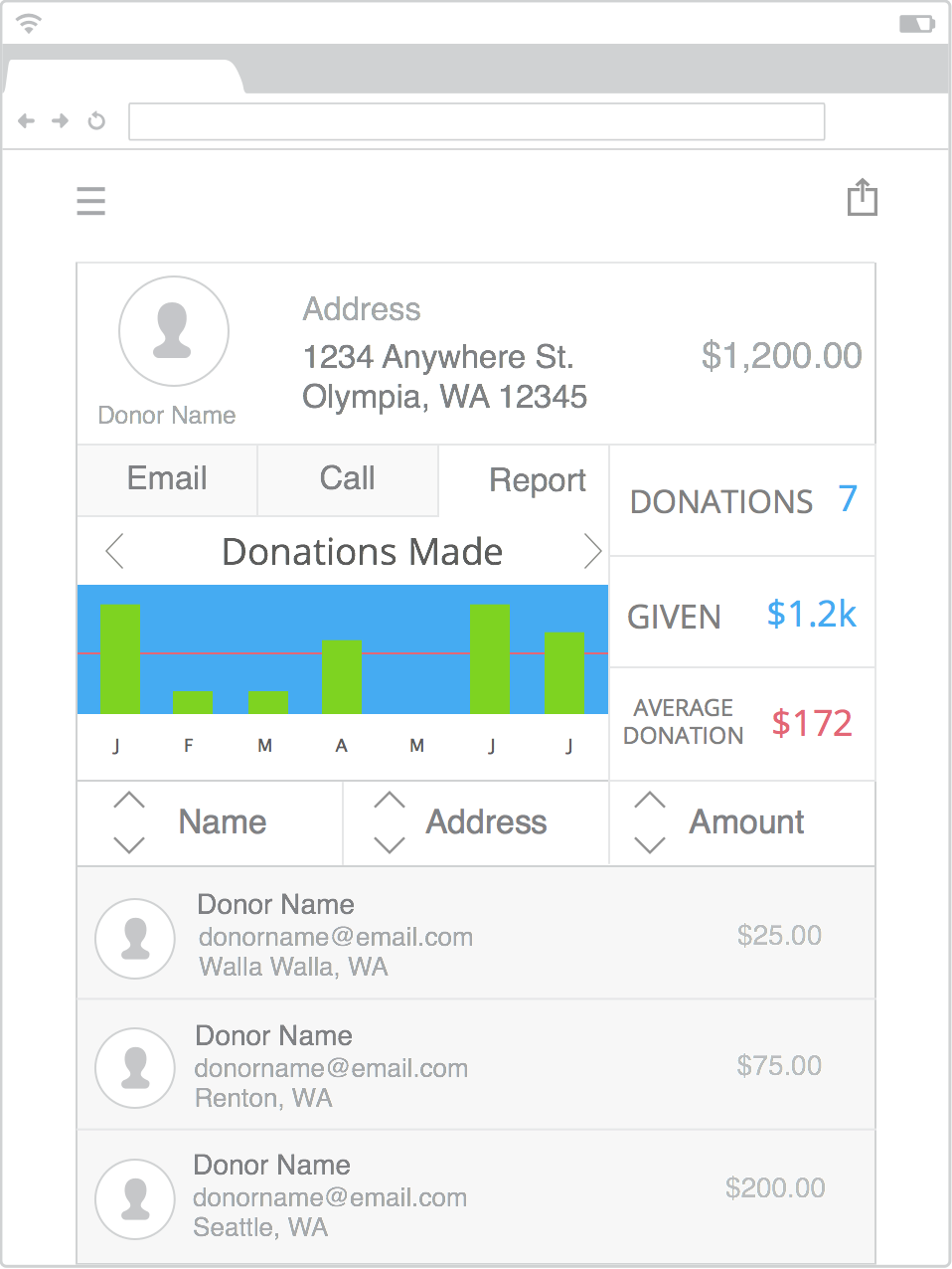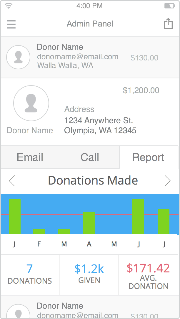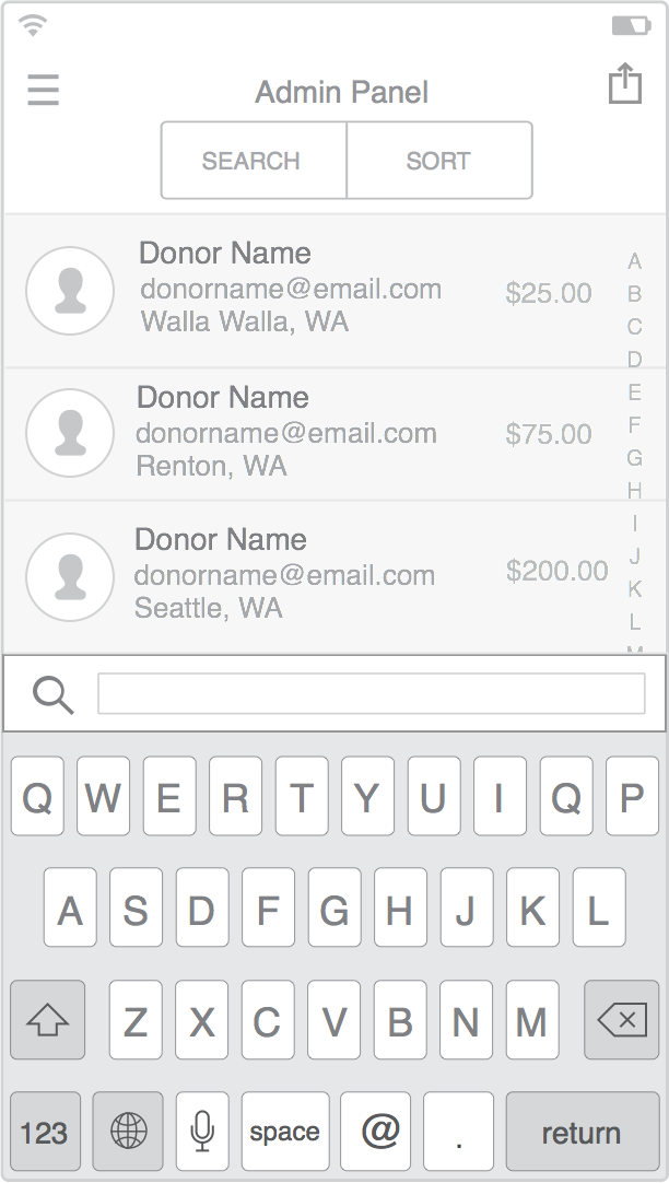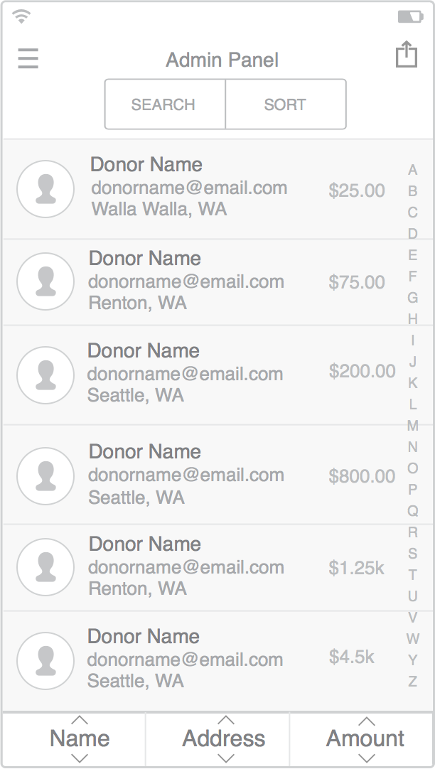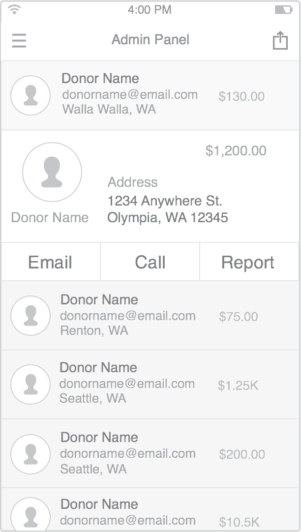 We were tasked with designing and building a fully functional, web-based application for accepting donations in one week. These are the wire frames used on the project. Interact with these views at http://invis.io/T2Z2DRM5